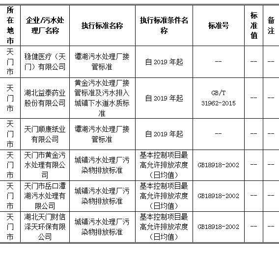附表8 天门市2020年上半年度污染源执行标准一览表(国控污染源及污水处理厂) 16