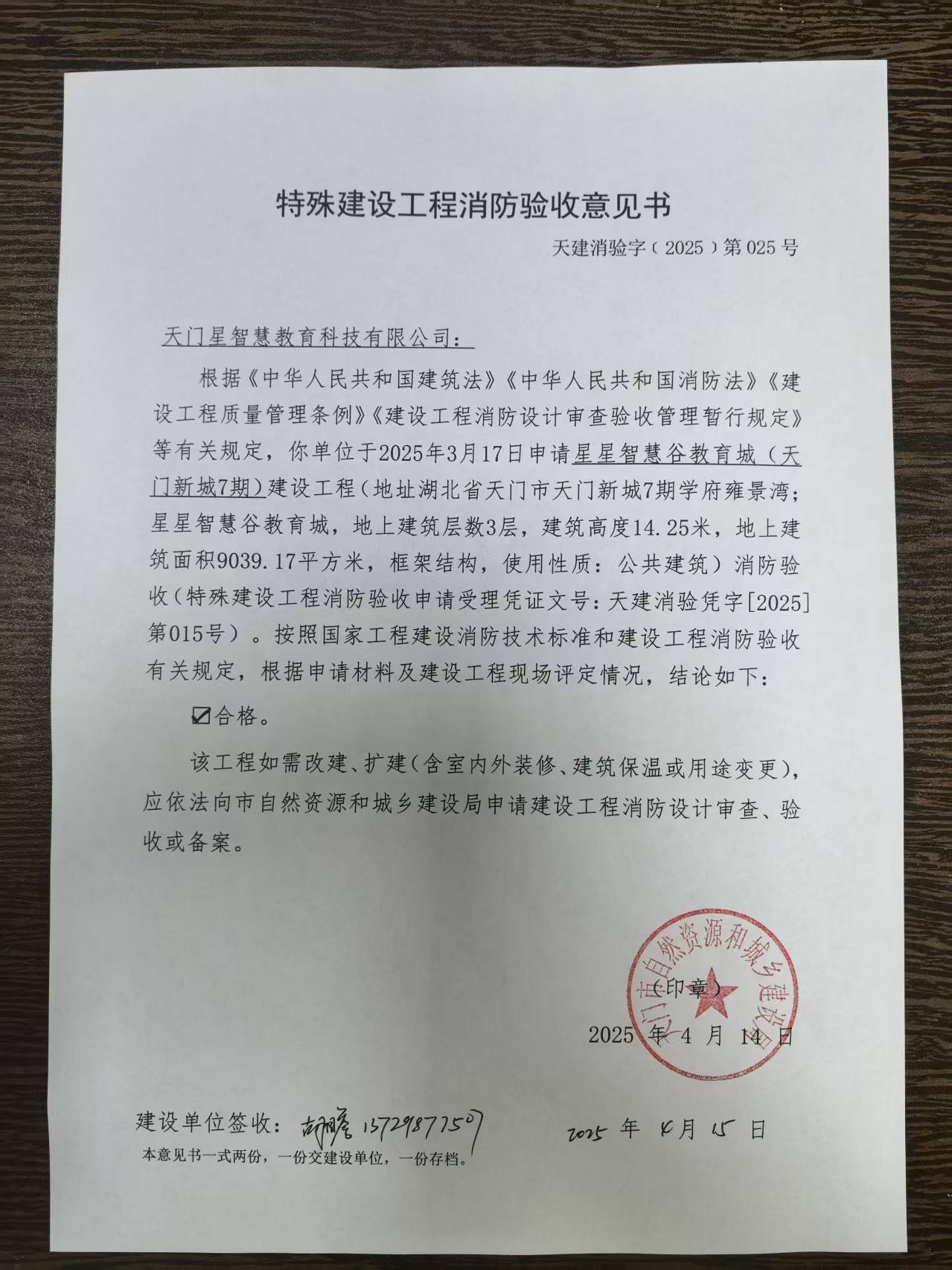 关于2025年四月(第三周)特殊建设工程消防验收合格意见书公示
